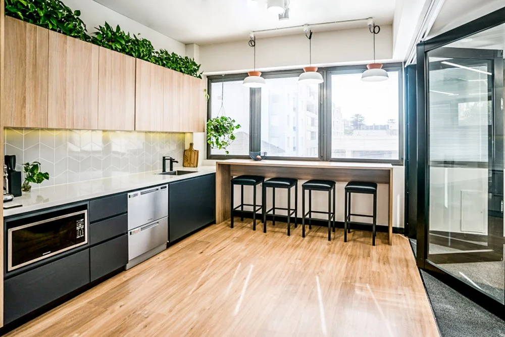 A standout feature of the project is the multi-functional kitchen and boardroom area, which has been designed to seamlessly open up into a larger space-encouraging informal meetings, team collaboration, and social interaction among staff.