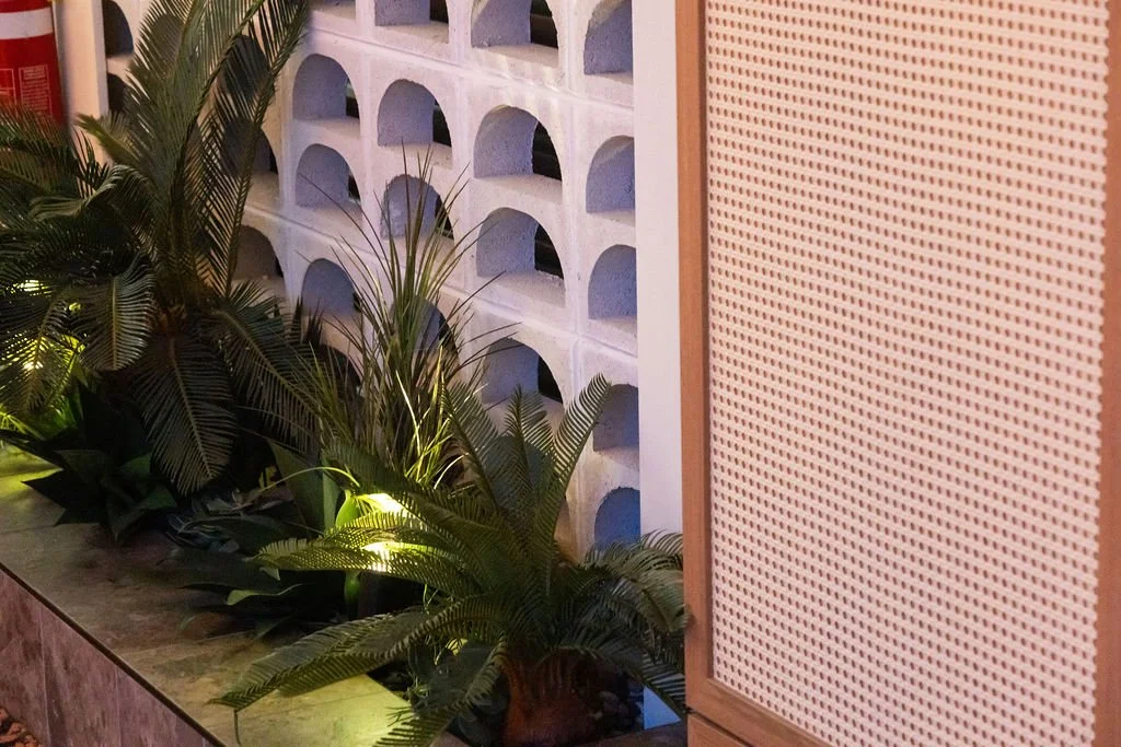 Inclusion of custom arched Breeze Blocks designed to allow 50% ventilation, maintaining airflow while enhancing aesthetics.