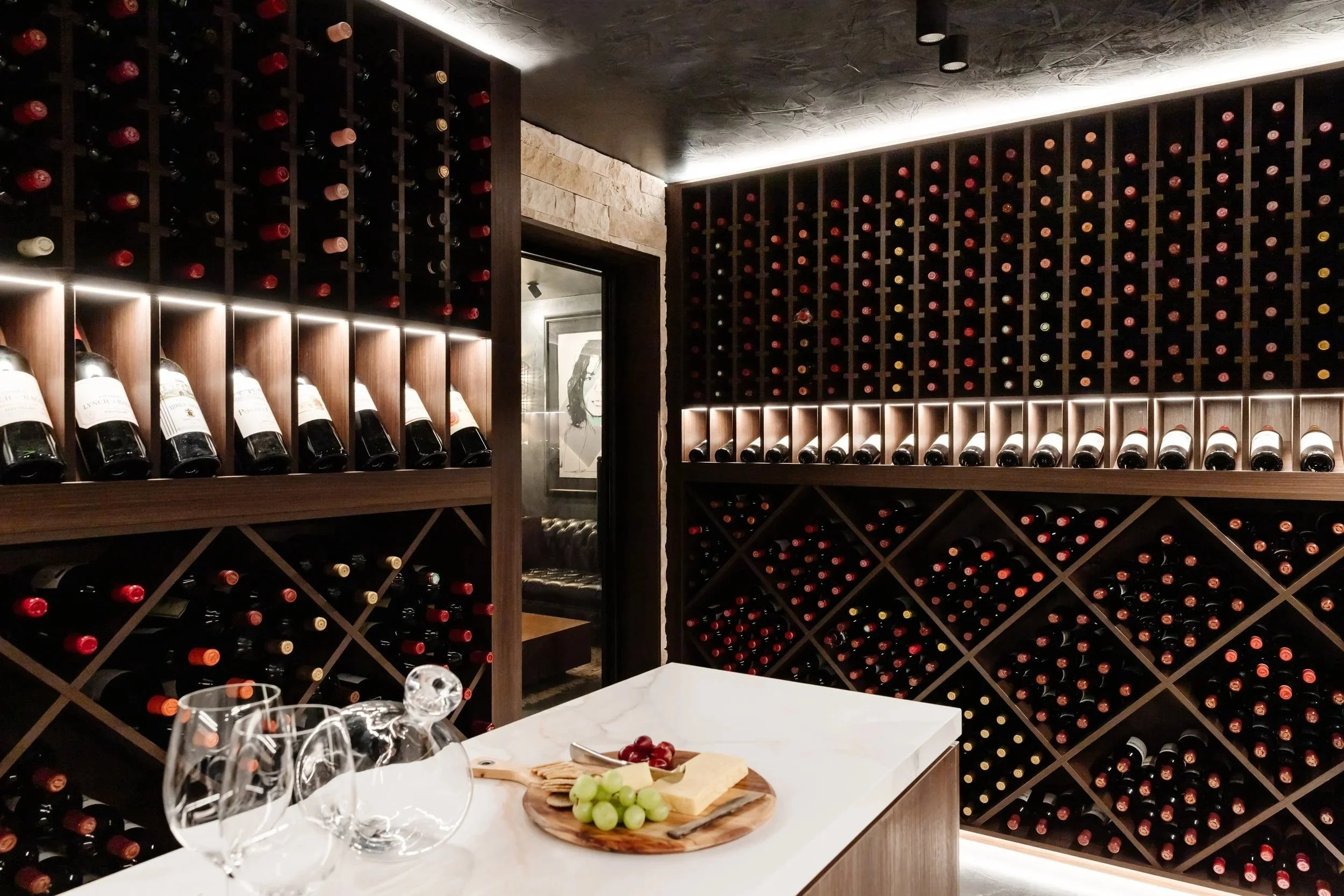 Originally underutilised, the space offered an opportunity to add meaningful function and long-term value to the home. The vision extended beyond storage, creating a dedicated environment where a growing collection could be properly preserved and genuinely enjoyed — seamlessly integrated into the home’s architectural language. The result is a fully insulated cellar paired with a warm, textural tasting lounge that invites gathering and slower moments.